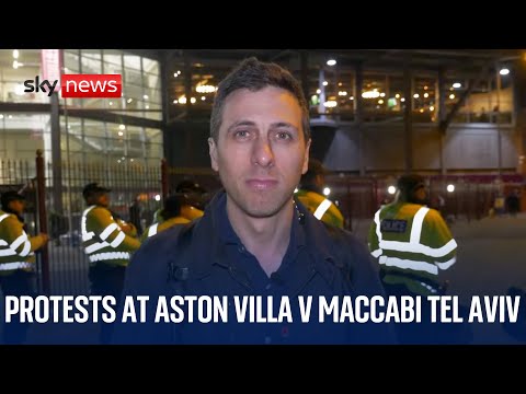 Watch live as protests take place ahead of Aston Villa v Maccabi Tel Aviv.